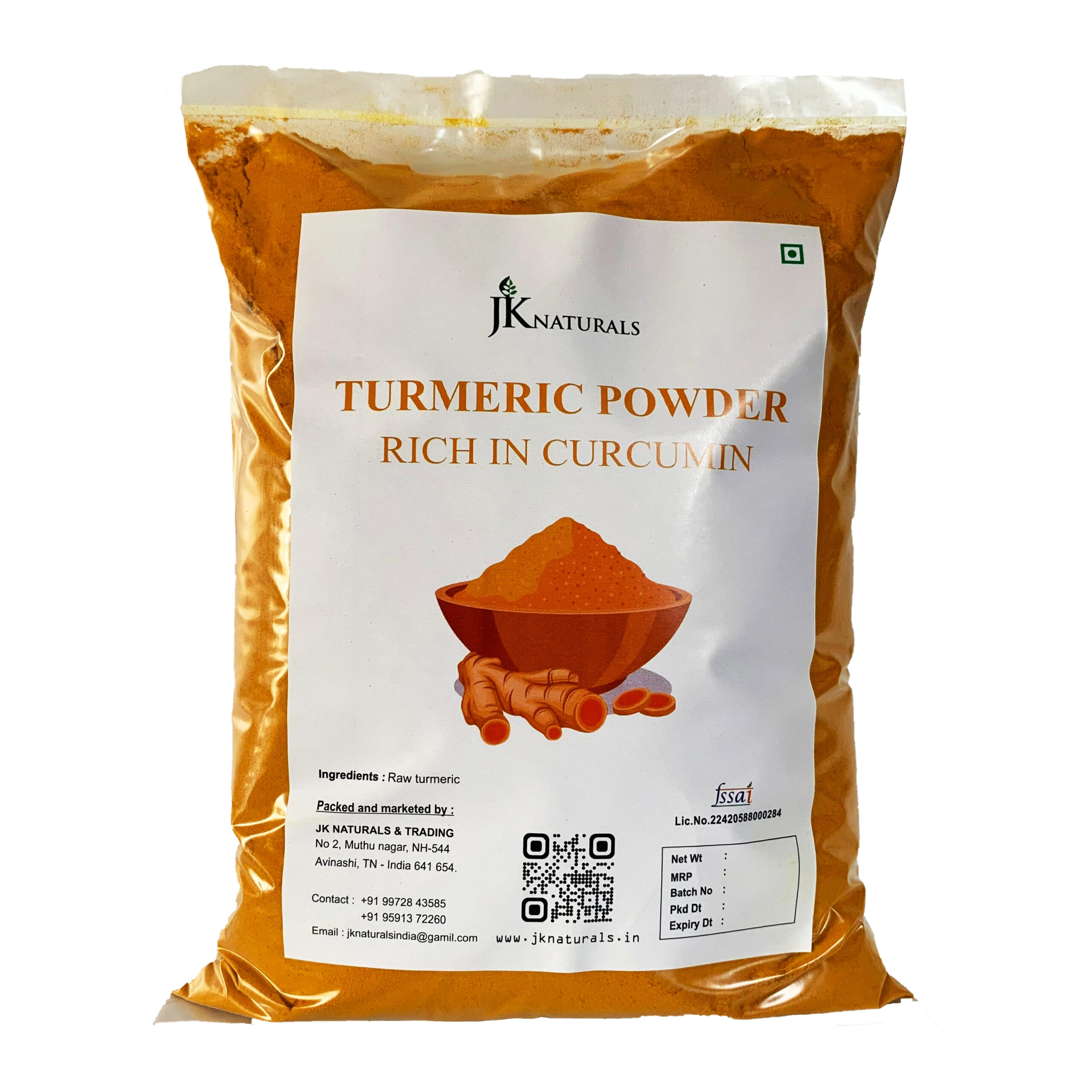 Raw turmeric powder with curcumin is a vibrant yellow spice made from grinding dried, raw turmeric roots. Curcumin is the active compound in turmeric responsible for its potent antioxidant and anti-inflammatory properties. This powder is widely used in Indian cooking for its earthy flavor and health benefits, and is also valued in traditional medicine for supporting joint health, digestion, and immunity. Its natural, unprocessed nature makes it a popular choice for those seeking a pure and wholesome spice.